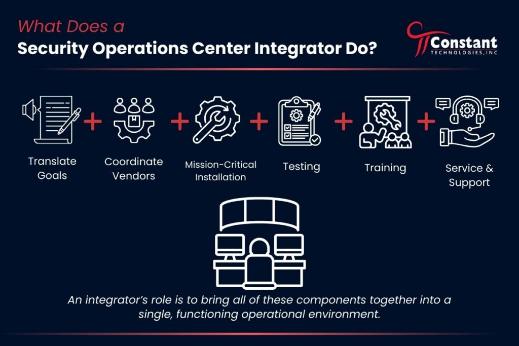 An integrator’s role is to bring all of these components together into a single, functioning operational environment.